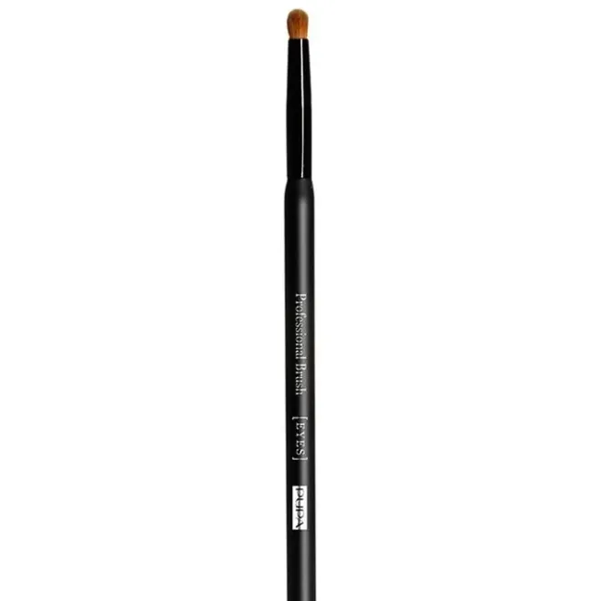 Spécifique pour estomper avec précision les ombres à paupières et les crayons dans le coin interne de l’oeil, entre la paupière fixe et la paupière mobile et au ras des cils.