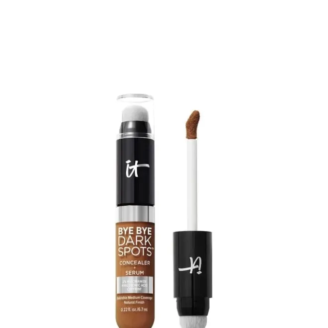 Dites « Bye Bye » aux cernes, aux taches et aux irrégularités de la peau grâce au correcteur global + sérum Bye Bye Dark Spots.