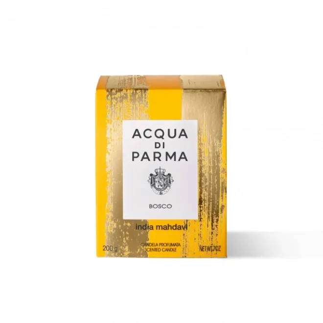 Issue de la collection Acqua di Parma Fêtes de fin d’année, la bougie Bosco raconte une ambiance de fêtes inspirée par l’air frais des forêts. La senteur fascinante des sapins et des aiguilles de pin givrées se mêle à la fraîcheur vivifiante de l’eucalyptus, réhaussée des notes chaleureuses des clous de girofle. Cette bougie parfumée en édition limitée se présente dans un pot en verre ornée de motifs dorés éclatants dessinés par India Mahdavi pour des fêtes de Noël remplies de couleur et de joie.