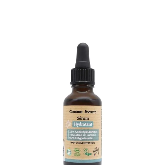 Sérum visage hydratant : Aloe Barbadensis Leaf Juice, Aqua, Pentylene Glycol, Sodium Hyaluronate, Xanthan Gum, Sodium Polyglutamate, Medicago Sativa Extract, Citric Acid, Ascorbic Acid