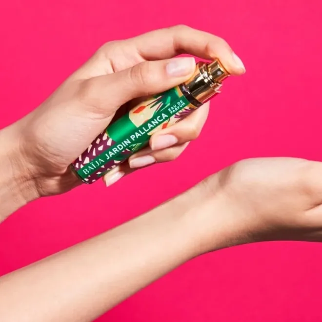- Vaporisez l’Eau de Parfum sur les points de pulsation (poignets, derrière les oreilles et sur le cou).