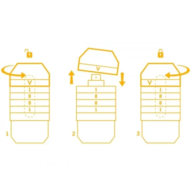 Pour accéder à la fragrance, il suffit de faire pivoter le capot afin de révéler le code secret vertical, V1881, en caractères orange.