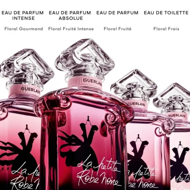 Créé en 1912, le flacon « cœur inversé » a traversé plus de cent ans d’histoire pour devenir une icône à part entière. Pour La Petite Robe Noire, ses lignes indémodables se parent d’un dégradé du noir au rose poudré pour évoquer les notes du parfum.