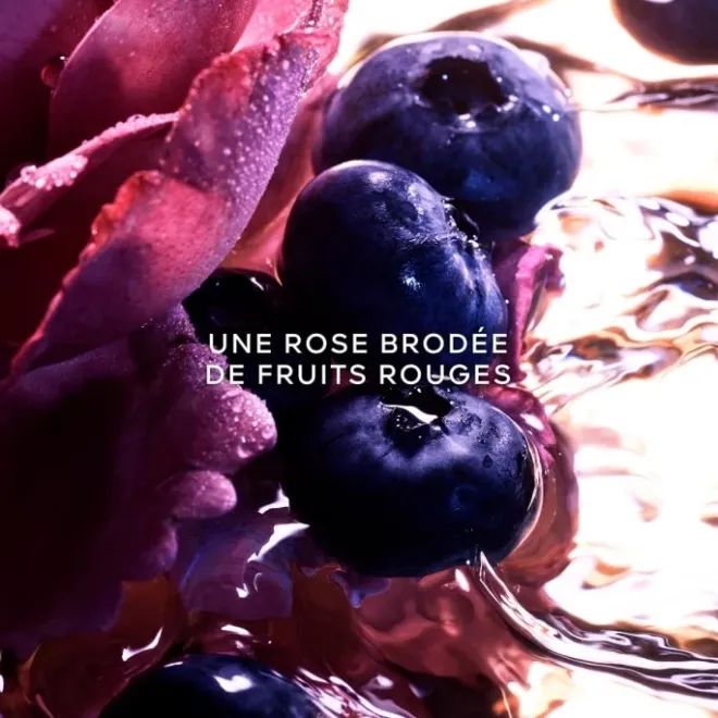 La rose iconique de La Petite Robe Noire est sublimée par des notes fruitées de myrtille et de framboise.