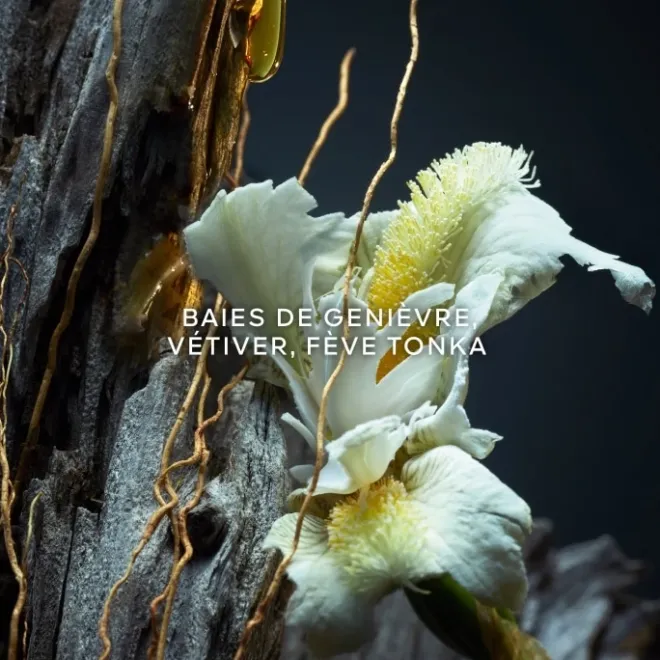 Cet ingrédient noble révèle toute la profondeur de ses nuances boisées, se mêlant à des notes fumées envoûtantes et à la fève tonka si chère à Guerlain.