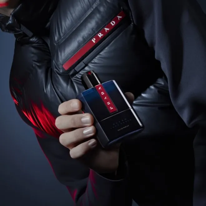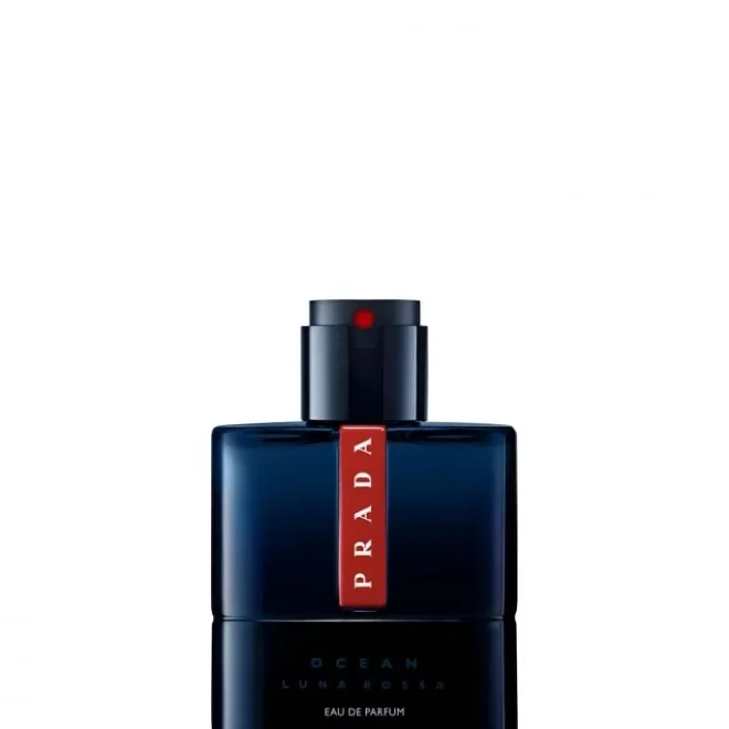 Le flacon, inspiré par l’excellence technologique et la beauté épurée et dynamique des voiliers extrêmes, fait écho à la puissance de la fragrance qu’il renferme. Laqué dans un bleu profond sophistiqué, qui rappelle l’intensité magnétique des profondeurs de l’océan. La ligne rouge iconique de PRADA, symbole d’innovation, en est l’emblème. Un élégant capuchon noir nuit est orné d’un point rouge, référence symbolique à la luna rossa : la lune rouge.