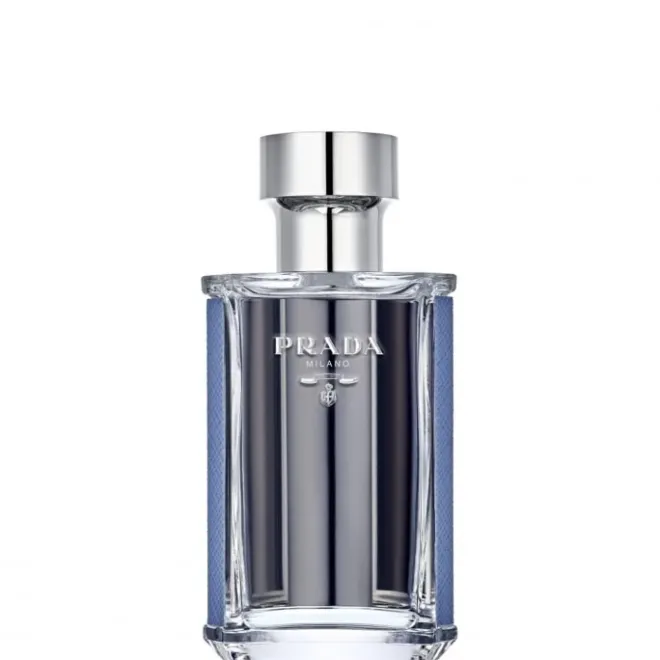 Semblable à ceux des autres fragrances de la collection L’Homme Prada, le flacon de cette eau de toilette homme affiche un design très moderne. Son dos incurvé est habillé d’une surface métallisée tandis que sa face avant, lisse et plane, est ornée du logo Prada qui apparaît en lettres argentées. Agrémenté d’une bande de cuir Saffiano bleu clair, le flacon incarne parfaitement l’image luxueuse et raffinée de la Maison Prada.