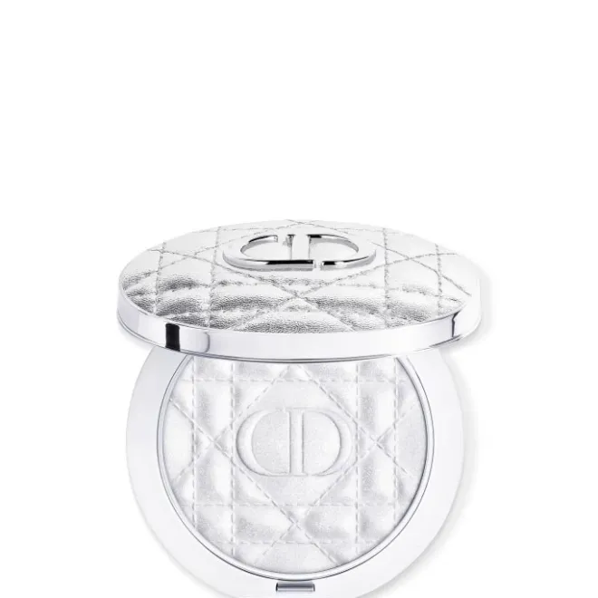 Poudre illuminatrice clipsée dans un écrin couture argenté rehaussé des initiales « CD » de Christian Dior.