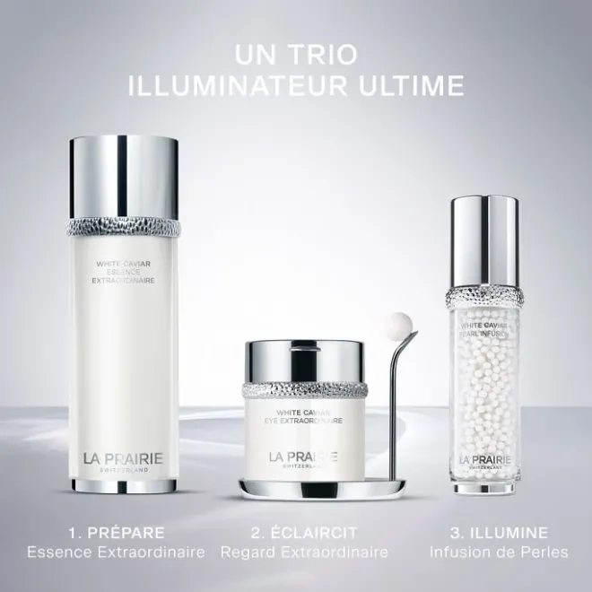 • Avec la collection White Caviar, enrichie de puissants ingrédients actifs dont la Lumidose, La Prairie s’inspire de la sereine clarté des lacs suisses pour élever les soins du visage au rang d’art