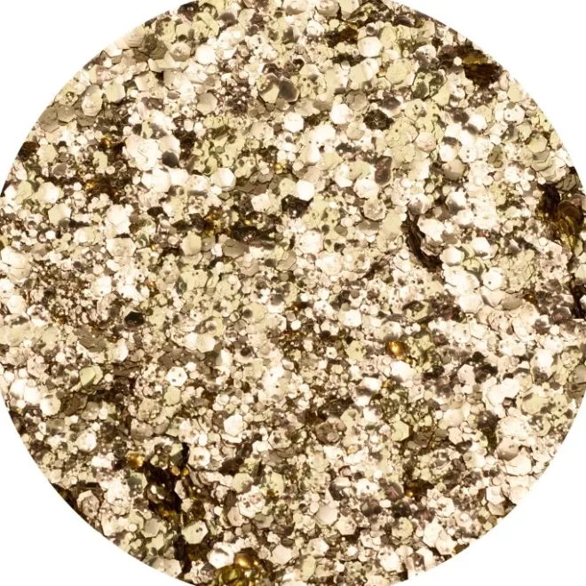Envie d’un style des plus brillants ? Choisissez ce mélange doré, composé de plusieurs tailles de paillettes pour un effet profondément scintillant.