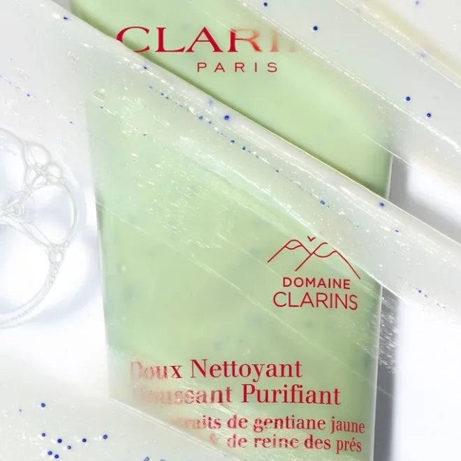 Ce nettoyant moussant enrichi aux extraits d’herbes des Alpes du Domaine Clarins démaquille, purifie et laisse la peau nette tout en préservant l’équilibre cutané.