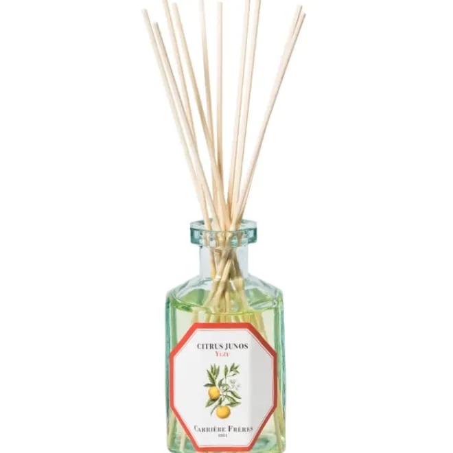 Ce fruit insolent et hespéridé s’enveloppe d’une bougie et d’un diffuseur avec quelques subtiles senteurs de thé, accompagné d’une note de pétale de fleur blanche et d’un léger voilage de musc.