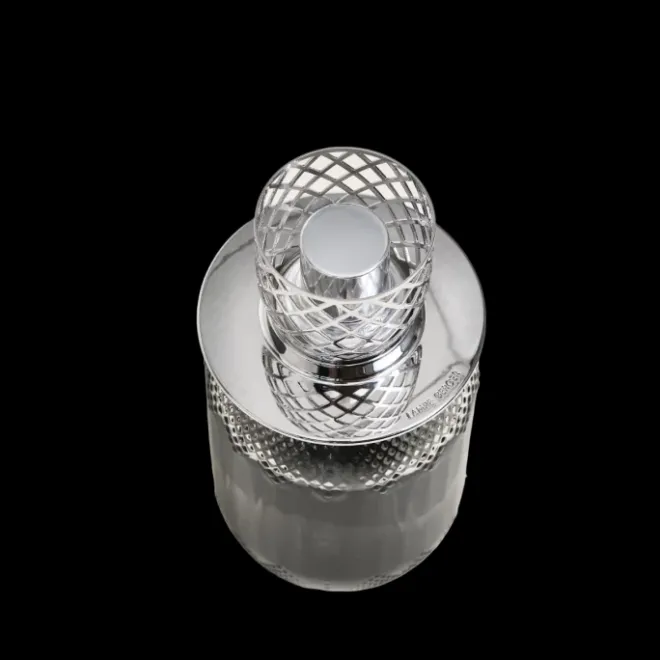 Le designer Serge Rusak a souhaité mettre en avant le travail du verre, en y apposant son style moderne et singulier. Le corps de la lampe à catalyse est façonné avec une grande finesse et on retrouve à plusieurs endroits un jeu de textures en pointe de diamant, rappelant les modèles originels de la marque. Ses finitions géométriques tout comme sa couleur grise, dégradée, à l’effet fumé subtil, permettent d’aboutir à un rendu visuel très contemporain. Le tout est couronné par une monture originale, à l’allure graphique art-déco.