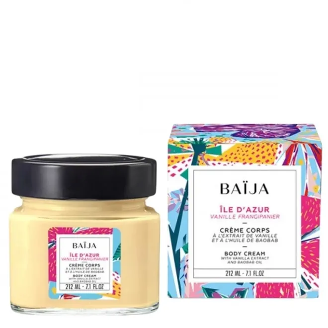 Onctueuse, notre crème corps Ile d’Azur contient de l’extrait de Vanille aux fonctions antioxydante et illuminatrice et de l’huile de Baobab nourrissante et revitalisante.