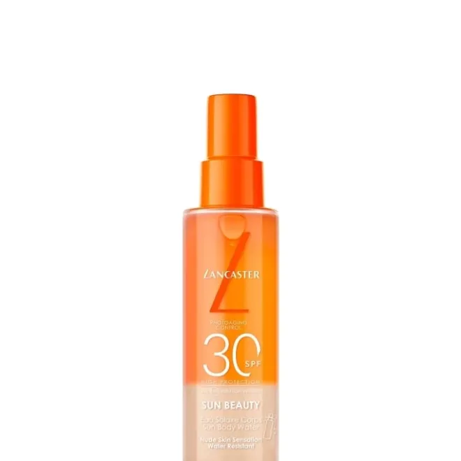 Protégez votre peau au-delà des soins UV traditionnels avec l’Eau Solaire Corps SPF30, signée Lancaster, la première marque de soins solaires de luxe en Europe1.