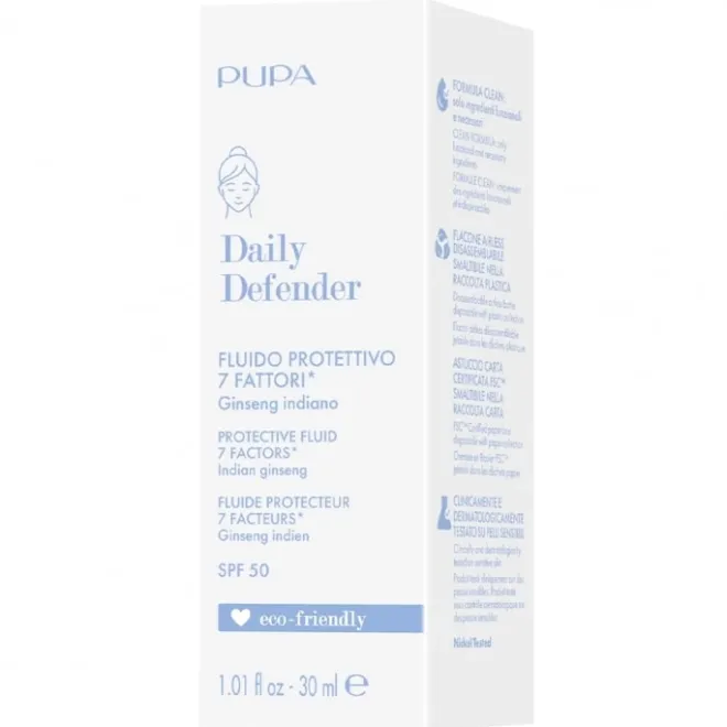 DAILY DEFENDER SPF50 est un fluide protecteur pour le visage à la texture ultra sensorielle qui adhère parfaitement à la peau, rétablissant la barrière cutanée et la rendant visiblement plus homogène, uniforme et lumineuse.