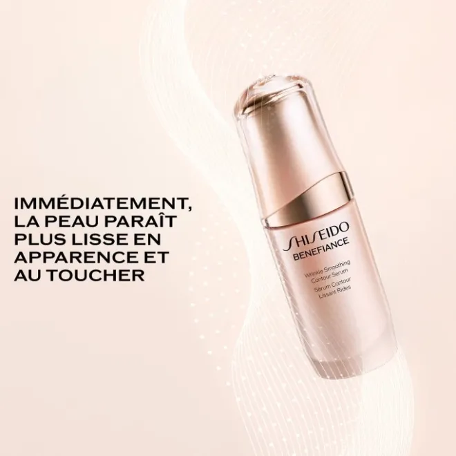 Grâce à ses actifs hydratants et raffermissants, le Sérum Contour Lissant Rides Benefiance Shiseido offre des résultats rapides sur la texture et la qualité de la peau. Au bout de quelques jours seulement, l’épiderme est visiblement repulpé, il est plus ferme et plus souple. Les ridules de déshydratation sont lissées tandis que l’apparence des rides d’expression est minimisée. Le teint est plus lumineux et conserve durablement son éclat.