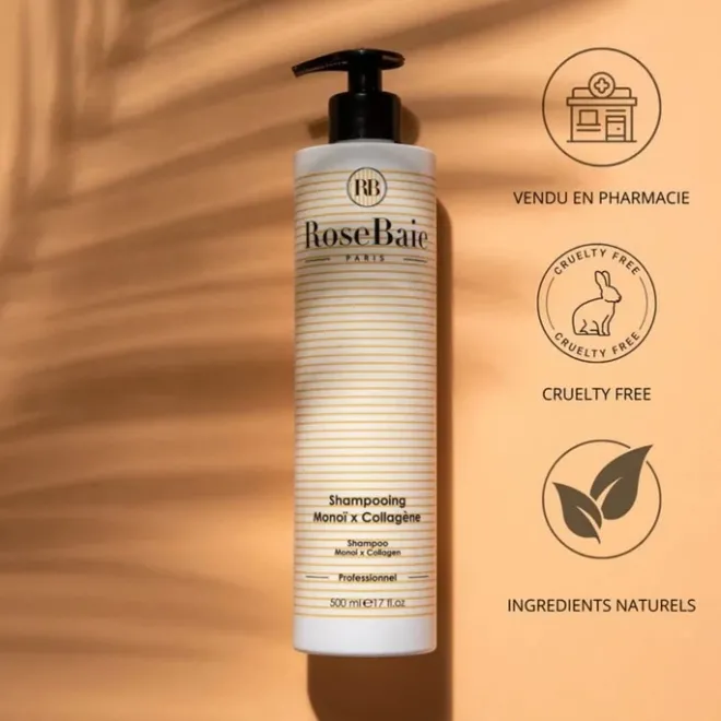 Plongez dans l’exotisme avec le Shampoing Monoï Protection & Revitalisant de Rosebaie. Enrichi en huile de monoï et en collagène, il nettoie en douceur tout en hydratant et renforçant vos cheveux, pour une chevelure douce, brillante et protégée.