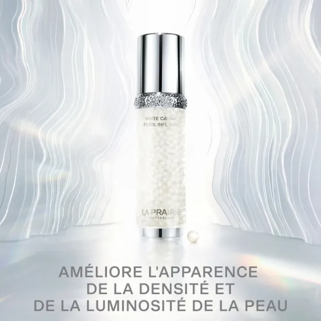 • La Prairie White Caviar Infusion de Perles redonne de l’éclat à la peau terne tout en la raffermissant grâce à l’Extrait de Caviar Doré : la peau est plus ferme et retrouve sa souplesse