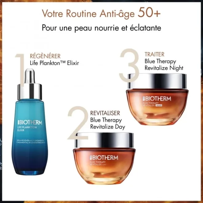 BIOTHERM a créé une nouvelle génération de soins anti-âge revitalisants, pour les femmes à partir de 50 ans, qui souhaitent une meilleure nutrition anti-âge et de l’éclat.