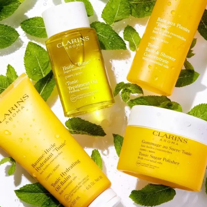 Véritables symboles de la marque Clarins, les huiles 100% extraits de plantes nées en 1954, ont jeté les bases de l’aromathérapie moderne. Alliant le pouvoir olfactif et stimulant des huiles essentielles aromatiques aux pouvoir bienfaisants d’extraits de plantes, ces concentrés de nature qui agissent en synergie sur la peau et sur l’esprit, renferment toute la science des plantes Clarins.