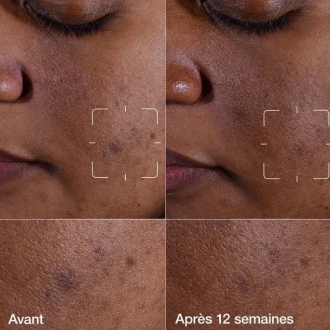 100% montrent une réduction visible de l’hyperpigmentation post-inflammatoire sur les teints plus foncés**.