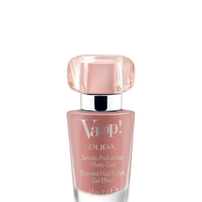 Vamp! est le vernis décliné dans les mêmes fragrances que l’Eau de Parfum Vamp!, pour des ongles délicatement parfumés à l’effet gel ravissant. Sa texture unique permet d’obtenir un effet épaississant tridimensionnel à la brillance extrême. Les ongles gagnent en volume grâce à un film de couleur homogène à la finition ultrabrillante, exceptionnellement résistant aux écaillements. Le parfum se révèle lorsque le vernis est sec et, grâce à la haute concentration de la fragrance présente dans la formule, les ongles sont délicatement et durablement parfumés. Le flacon rappelle une véritable miniature de l’Eau de Parfum Vamp! et reprend la forme iconique du mascara Vamp!. L’applicateur « fan brush » – au format plat en éventail doté de 300 poils arrondis – combiné au bouchon interne nervuré assure une application facile et fluide et un dosage uniforme et contrôlé de la couleur.