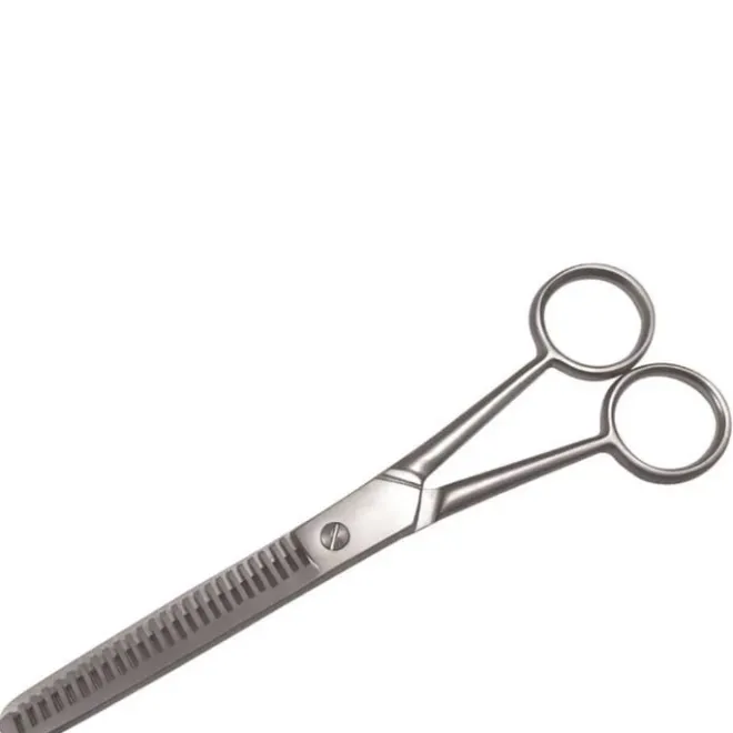 Ciseaux à effiler indispensables aux coiffeurs pour désépaissir les cheveux et réaliser des dégradés dans la masse tout en préservant la longueur.