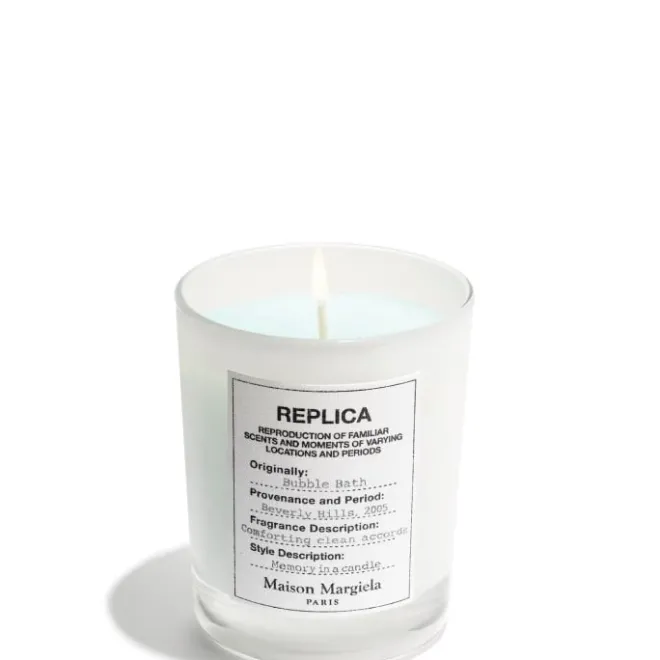 La bougie Bubble Bath est à la fois parfumée et décorative pour votre intérieur avec son précieux verre blanc orné de l’iconique étiquette REPLICA, emblématique de Maison Margiela.