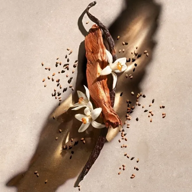 La sensualité de la vanille enlace les notes lumineuses de fleur d’oranger et l’audace inattendue du sésame grillé.
