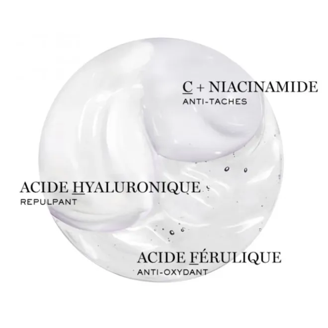 Pour la première fois, les laboratoires Lancôme réunissent dans une triple dose 3 actifs dermatologiques réputés incompatibles (Acide Hyaluronique, Vitamine C + Niacinamide, Acide Férulique) pour rénover la peau à tous les niveaux :