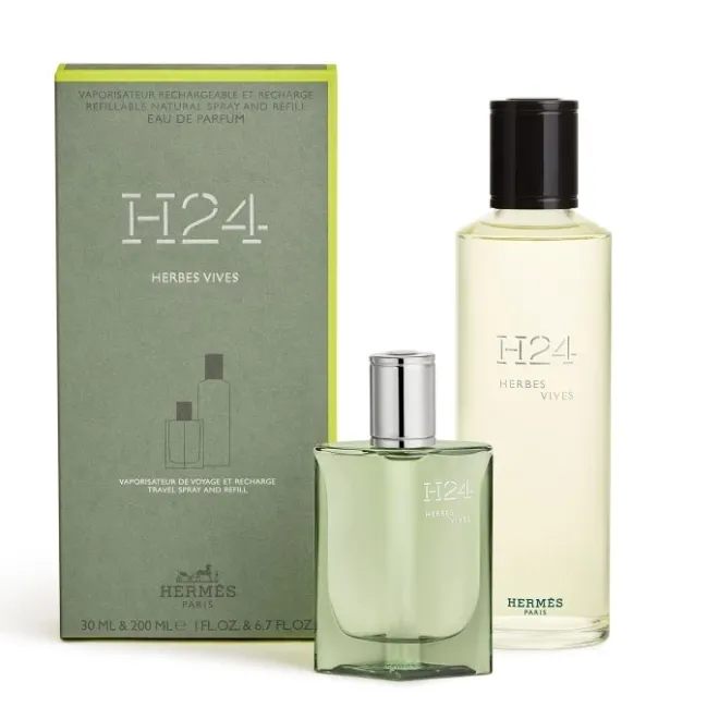 L’eau de parfum H24 Herbes Vives associe la puissance d’un bouquet d’herbes fraîches, la texture d’une poire granitée et la vivacité d’une molécule high-tech, le Physcool®.