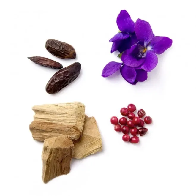 La violette douce et poudrée contraste avec la chaleur de l’ambroxan, tandis que le cèdre cultivé de manière naturelle s’harmonise avec l’onctueuse fève tonka. Tous ces accords formant une captivante symphonie aromatique florale et boisée, teintée d’une élégance intemporelle.