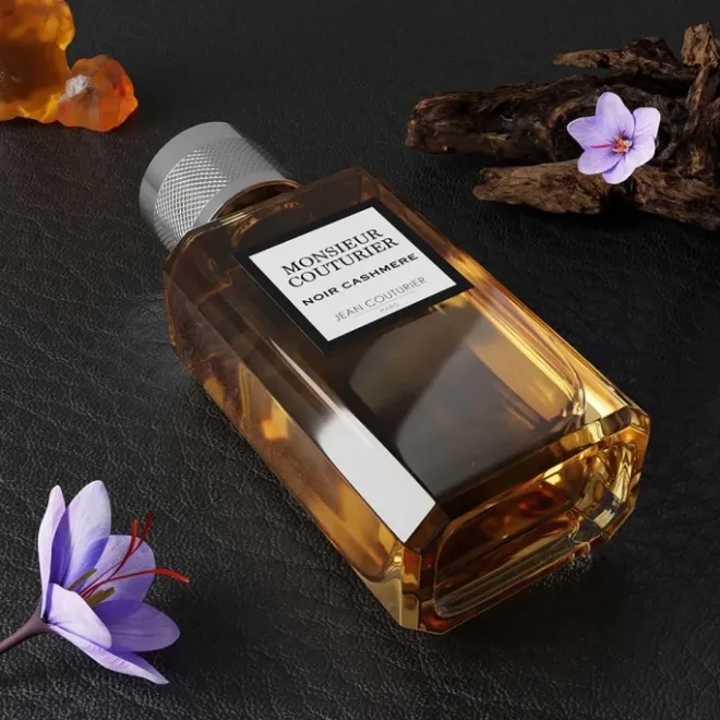 Charismatique à souhait, l’eau de parfum Noir Cashmere de Jean Couturier s’habille d’un écrin à la fois sobre et sophistiqué. Un étui d’un noir profond, dont la texture évoque un jeu de tissage. Un flacon sobre et facetté, coiffé d’un capot lourd au détail ciselé, au caractère pleinement assumé.