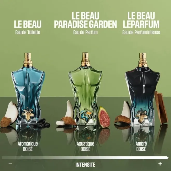 Explorez le jardin Jean Paul Gaultier, où l’eau de parfum masculine Le Beau Paradise Garden dévoile un paradis enivrant.