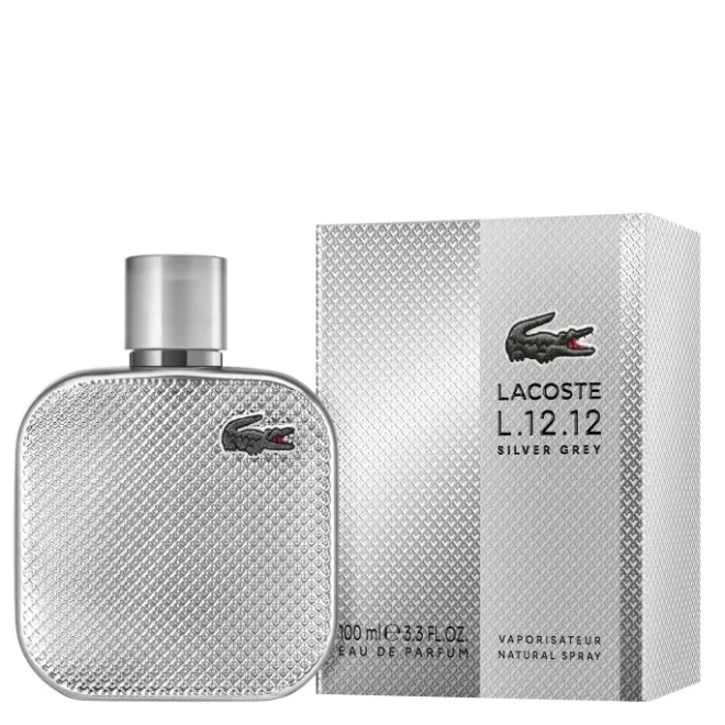 Estampillé de l’iconique crocodile brodé, le flacon L.12.12 Silver Grey arbore le grain ‘petit piqué’ de coton du polo mythique, avec une finition métal argentée inédite, rendant hommage à la raquette de tennis en acier inventée par René Lacoste.