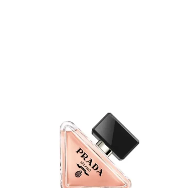 Encapsulant l’essence même de Prada, le flacon rechargeable Paradoxe réinvente le code iconique de la marque : son logo triangle. Décalée, mais puissamment ancrée, la silhouette radicale de la bouteille est adoucie par des angles arrondis, tandis que la délicate couleur rose corail du parfum contraste avec le noir profond du capot et du blason Prada.