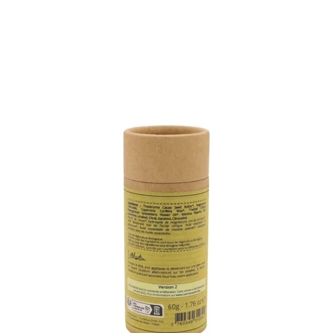 - Sans bicarbonate de soude, sans alcool, sans sel d’aluminium, sans huile de palme