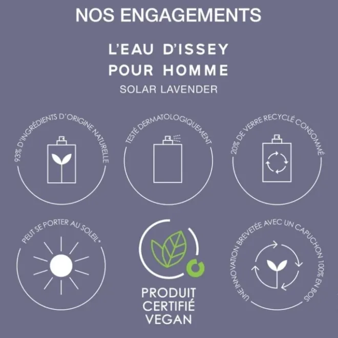 L’Eau d’Issey pour Homme Solar Lavender est la nouvelle Eau de Toilette Intense d’Issey Miyake, née des premiers rayons de soleil.