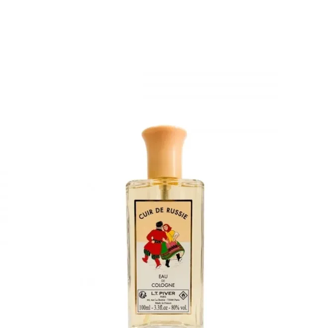 Son flacon rectangulaire s’orne d’un cabochon chromé aux formes d’une toque cosaque. L’étiquette de l’eau de toilette Cuir de Russie L.T Piver demeure telle qu’au XIXe. Elle évoque la Russie et le cuir des bottes frottées contre l’écorce des bouleaux.