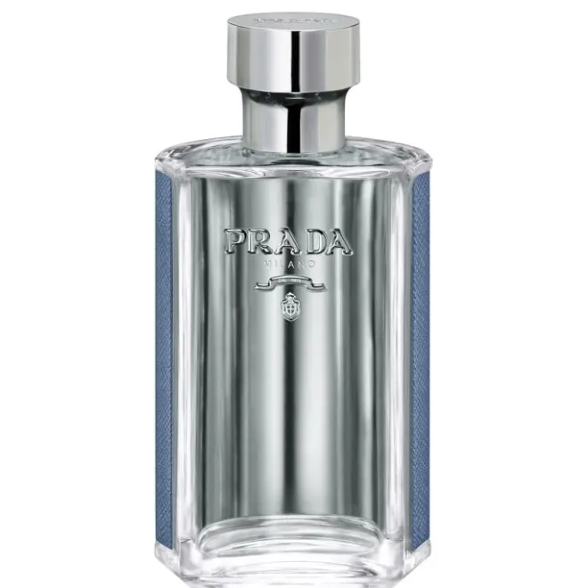 Semblable à ceux des autres fragrances de la collection L’Homme Prada, le flacon de cette eau de toilette homme affiche un design très moderne. Son dos incurvé est habillé d’une surface métallisée tandis que sa face avant, lisse et plane, est ornée du logo Prada qui apparaît en lettres argentées. Agrémenté d’une bande de cuir Saffiano bleu clair, le flacon incarne parfaitement l’image luxueuse et raffinée de la Maison Prada.