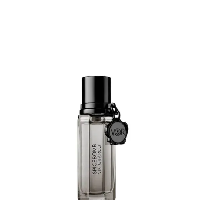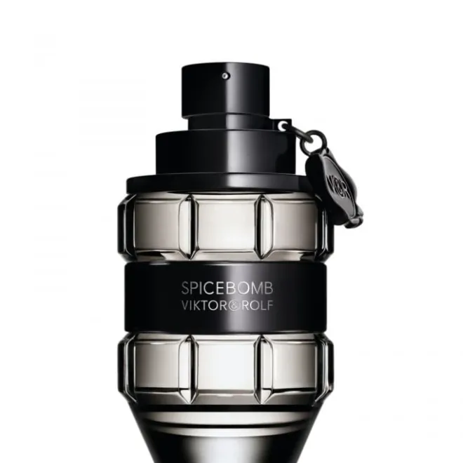Retrouvez Spicebomb Viktor&Rolf dans un flacon facetté en forme de grenade grise argentée. Un bandeau central noir brillant vient élégamment ceinturer la bouteille, alors que le sceau de Viktor&Rolf, accroché au spray, fait office de détonateur sur cette arme de séduction massive.