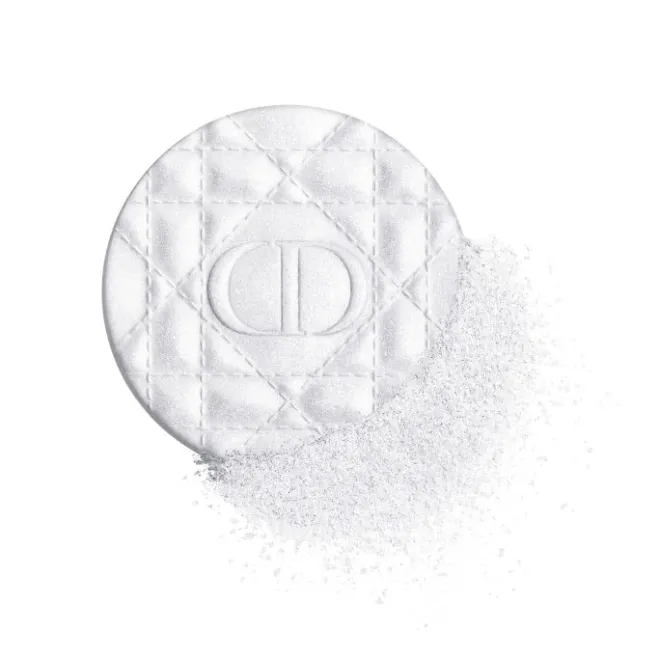 Poudre illuminatrice clipsée dans un écrin couture argenté rehaussé des initiales « CD » de Christian Dior.