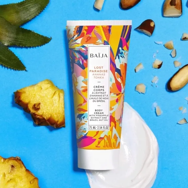 Onctueuse, notre crème corps Lost Paradise contient de l’extrait d’Ananas illuminateur et est enrichie en huile de Noix du Brésil nourrissante. Sa texture généreuse pénètre parfaitement et laisse un incroyable toucher velouté sur la peau. Son parfum de fruits frais et de fleurs solaires invite au voyage, à la recherche d’un paradis exotique.
