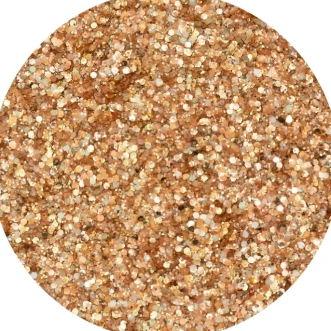 Découvrez notre mélange de paillettes éco-responsables Bulles d’agrumes, un éclat de teintes orangées et dorées pour sublimer tous vos maquillages.