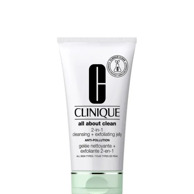 Grâce à sa formule douce spécifiquement conçue pour le soin du visage, la Gelée Nettoyante + Exfoliante 2-en-1 All About Clean Clinique répond aux besoins des peaux sèches comme des peaux mixtes à grasses. Ce nettoyant pour le visage débarrasse efficacement l’épiderme des impuretés accumulées durant la journée, y compris des résidus de pollution qui ternissent le teint et accélèrent le vieillissement cutané. Enrichie en perles de bambou, la Gelée Nettoyante + Exfoliante 2-en-1 All About Clean désincruste les pores en douceur pour libérer la peau des cellules mortes. Cette action exfoliante contribue à raviver l’éclat du teint et à assainir l’épiderme au fil des utilisations.