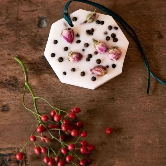 De production artisanale et de fabrication française dans nos ateliers en Normandie, chaque palet botanique est parfumé à l’aide d’un mélange de matières premières naturelles et de synthèse.