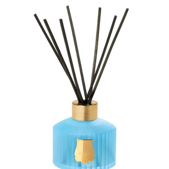 Fabriqué à la main dans la même verrerie que les bougies, le diffuseur est surmonté d’un anneau en aluminium 100% recyclable. Au travers de celui-ci, vous placez 8 bâtonnets en rotin noir naturel.