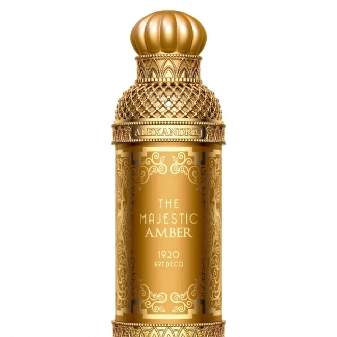Alexandre J est un créateur français qui se décrit comme un « architecte des matières et des sens ». Amateur d’art moderne et ancien, il lance The Art Deco Collector à l’occasion des 100 ans de l’émergence du style Art Déco. Ce mouvement artistique, né au début des années 1900, se caractérise par la richesse et le faste de ses ornementations. Alexandre J rend ainsi hommage à la France des Années folles avec une ligne de 6 parfums à l’identité forte. Parmi ces fragrances, The Majestic Amber Alexandre J est une eau de parfum sortie en 2019, élaborée à partir de matières premières rares et précieuses.