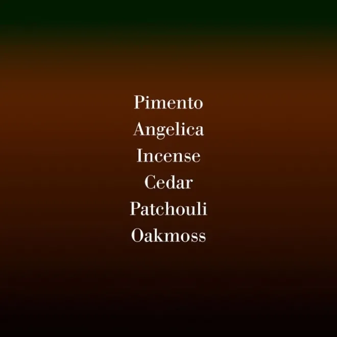 La fraîcheur épicée des fleurs de pimiento, d’angélique et de genièvre se fond dans une mer boisée de cèdre, de patchouli et de vétiver, liée par le galbanum et l’encens, dans une mystérieuse mise en valeur du parfum naturel de l’homme.